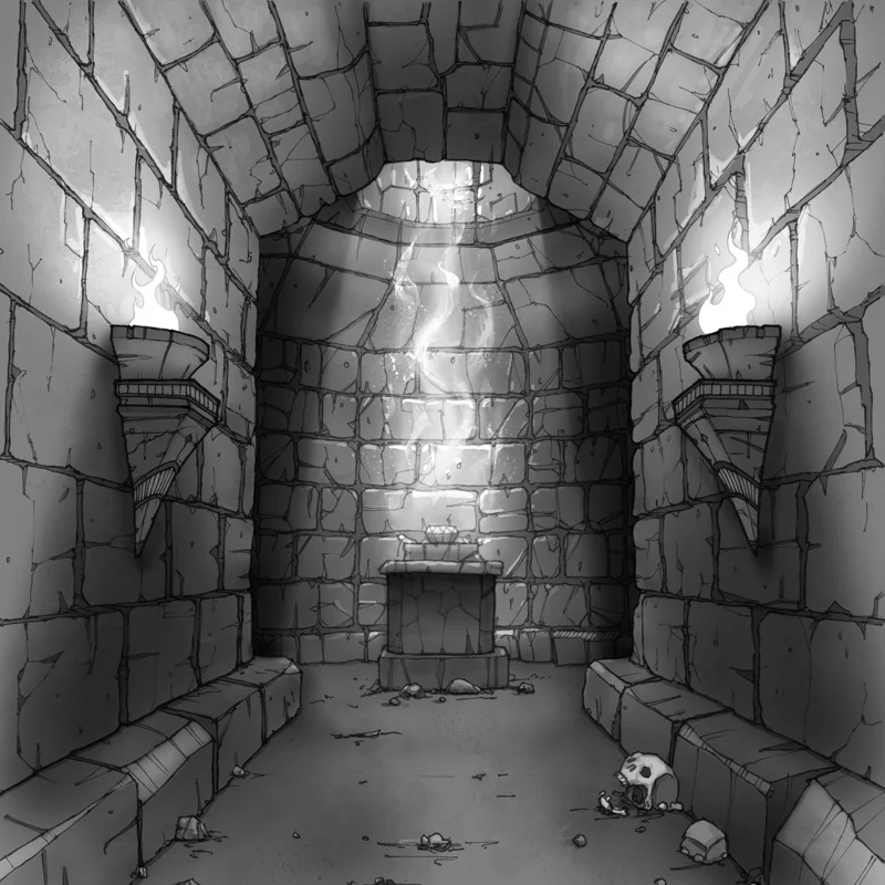 Sacred Dawn - Catacombs Dead End - SketchUp, Pen & Ink, Photoshop